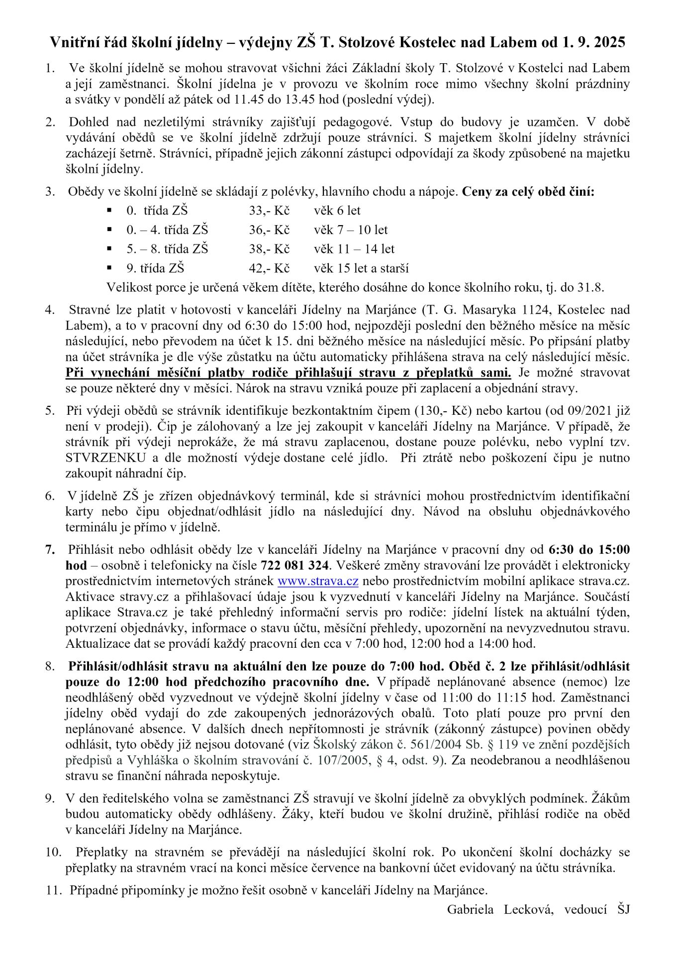 PŘIHLAŠOVÁNÍ A ODHLAŠOVÁNÍ STRAVY NA AKTUÁLNÍ DEN MAXIMÁLNĚ DO 7:00 hodin